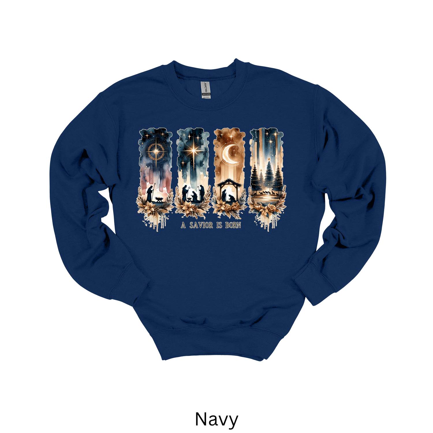 A Savior Is Born Long Sleeve Christmas Sweatshirt
