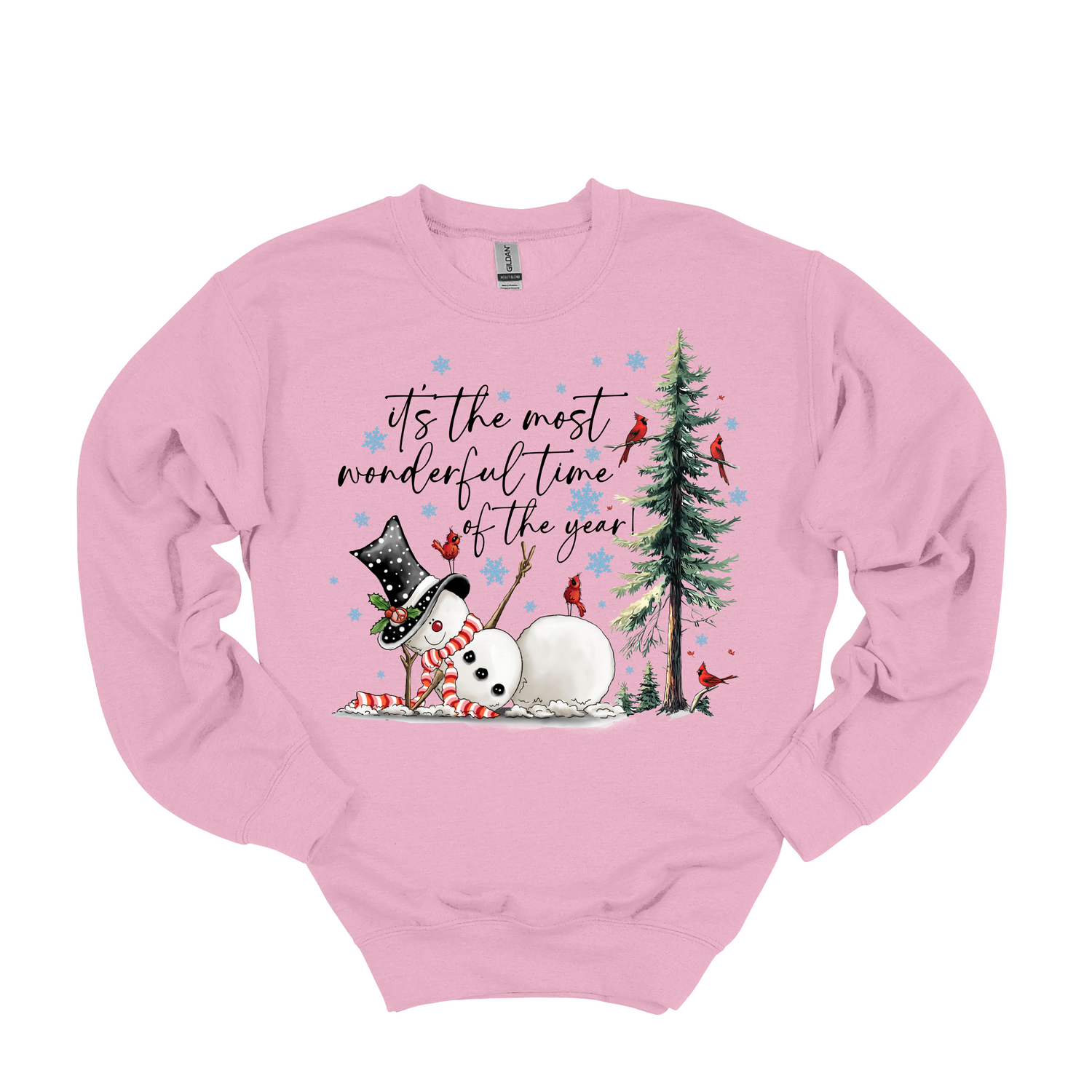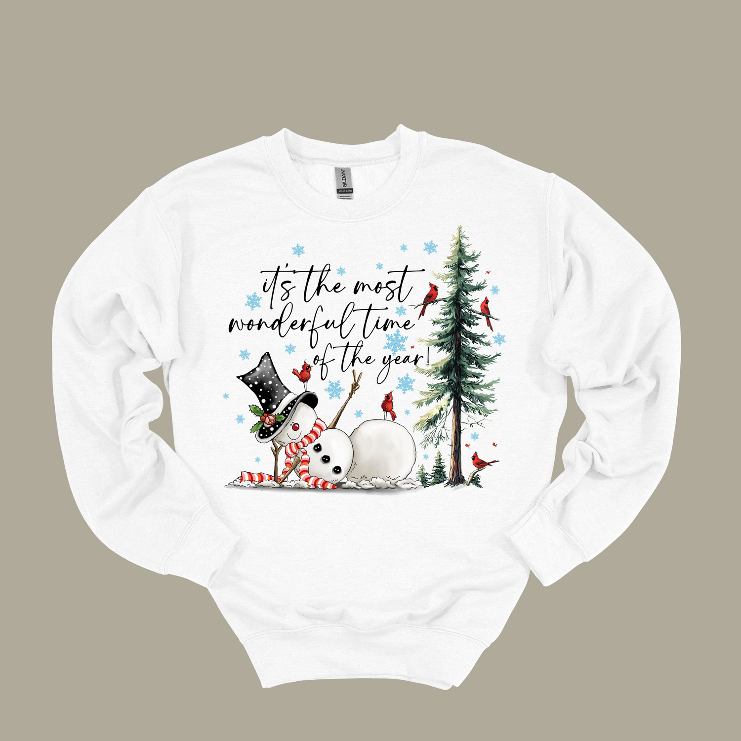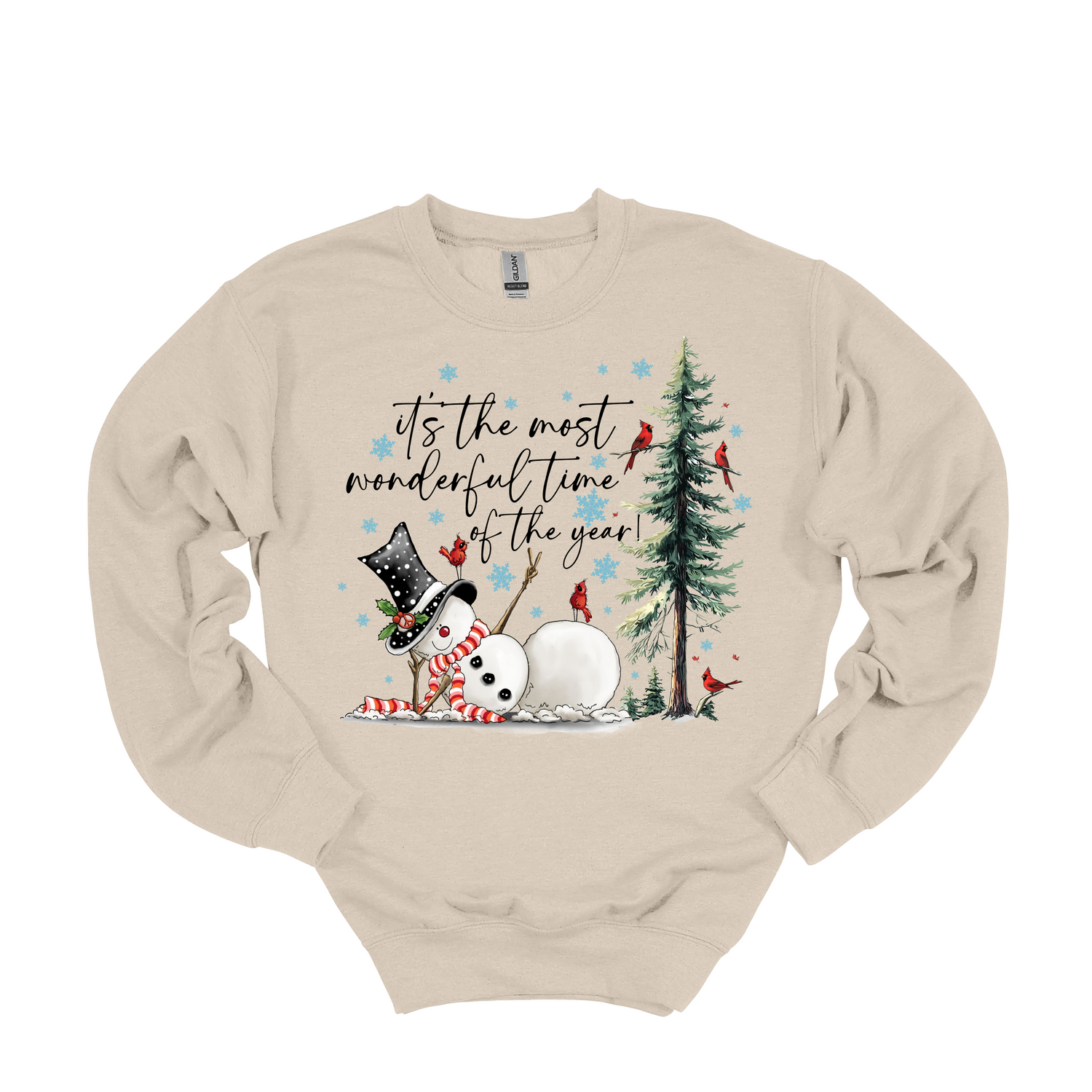 Get ready to feel the holiday cheer with our exclusive "It's the Most Wonderful Time of the Year" sweatshirt! This cozy top features an adorable, festive snowman design that will bring a smile to everyone's face.
