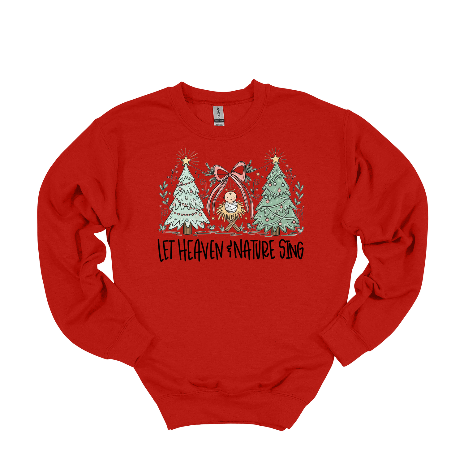 Celebrate the holiday season with a touch of faith and comfort. Our "Let Heaven and Nature Sing" sweatshirt is a beautiful and understated way to share the message of Christ's birth. The elegant design draws inspiration from the classic hymn, featuring a nativity graphic that reminds us to prepare Him room in our hearts.